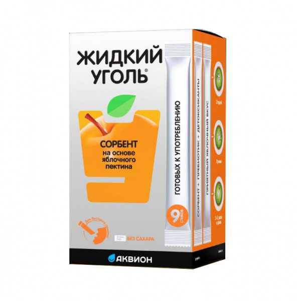 Жидкий уголь гель для приема внутрь с пектином (БАД) 10мл N9