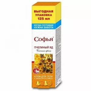 Крем для тела Софья. Пчелиный яд - натуральное эффективное средство профилактики заболеваний суставов и позвоночника. Способствует улучшению функционального состояния опорно-двигательного аппарата, оказывает противовоспалительное, спазмолитическое действие. Стимулирует нормолизацию метаболизма в суставной ткани, тормозит диструктивные процессы. Препятствует образованию солевых отложений, уменьшает болезненные проявления, снижает риск развития и прогрессирования артритов, остеоартрозов и остеохондроза.
