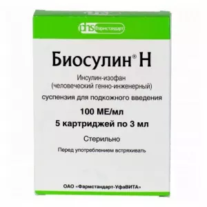Биосулин Н сусп для п/к вв 100МЕ/мл 3мл картр/пач N5x1 Фармстанд-Уфавит Россия