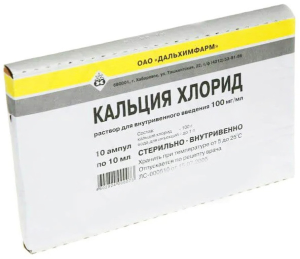 Кальция хлорид р-р в/в 100мг/мл 10мл амп короб карт N10x1 Дальхимфарм Россия