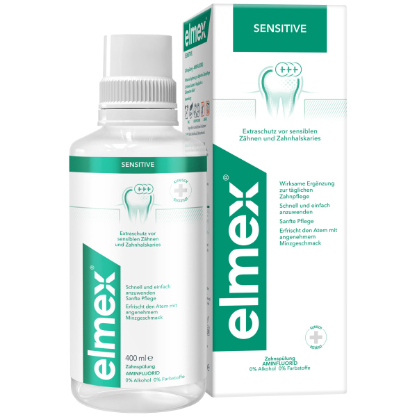 Ополаскиватель для полости рта elmex Сенситив предназначен для ежедневной гигиены. Обеспечивает дополнительную защиту от повышенной чувствительности зубов и пришеечного кариеса. Высокоэффективный аминофторид, входящий в состав ополаскивателя, защищает зубы от кариеса, замедляет рост бактерий, образующих зубной налет. Ополаскиватель для полости рта elmex Сенситив помогает очистить участки зубов, труднодоступные для зубной щетки. Особенно рекомендован при наличии ортодонтических конструкций (брекет-систем и пр.), несъемных и частично съемных зубных протезов.