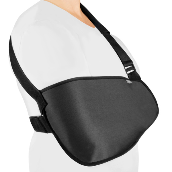 Бандаж для руки оснащен двумя фиксирующими ремнями: один — на плечо, второй — для фиксации руки к телу. Такая система позволяет не только удерживать руку в положении, уменьшающем нагрузки на суставы плеча, локтя, но и ограничивать резкие движения, вызывающие боль. Ремни регулируются по длине.